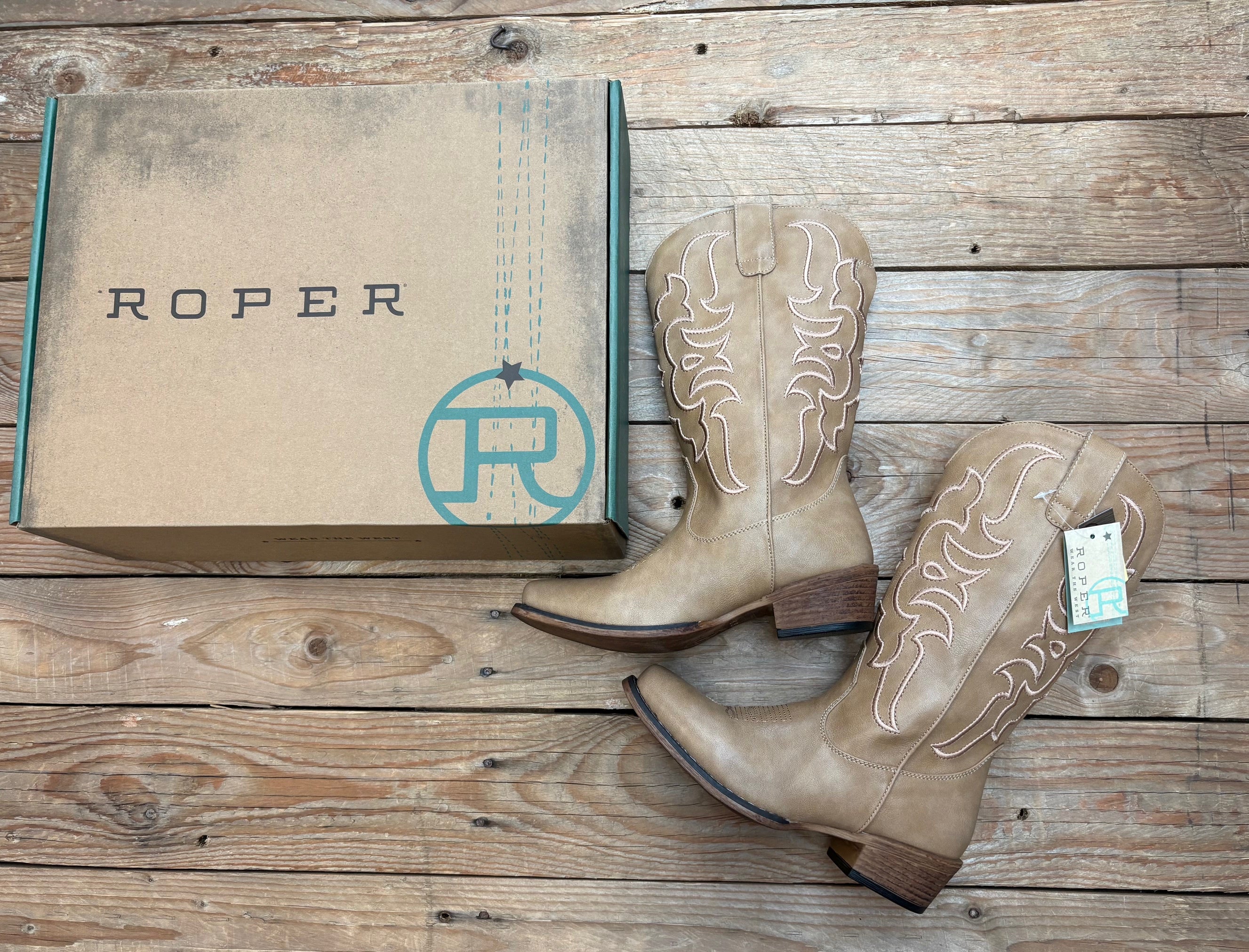 Womens Roper Monterey Aztec Tan Burnished Leather Boot
