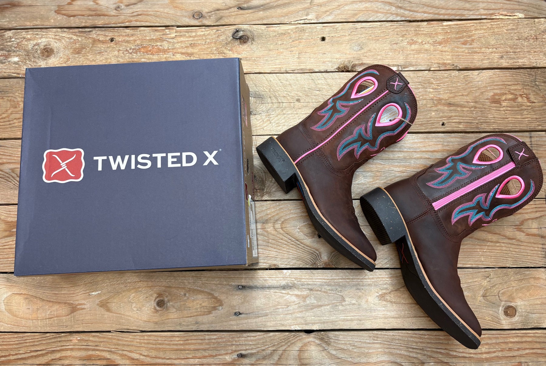 Womens Twisted X 9" Tech X2 Zip Boot - Chocolate Truffle / Pink / Blue