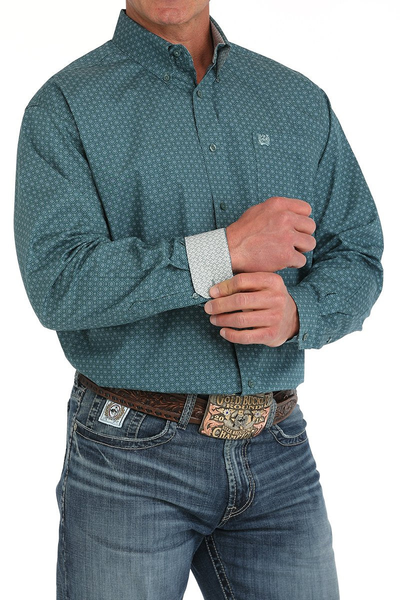 Mens Cinch Medallion Print Button Down Western Shirt - Green