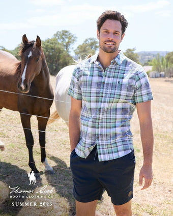 Men’s Thomas Cook Gerry Check Linen Short Sleeve Shirt - Green / Navy
